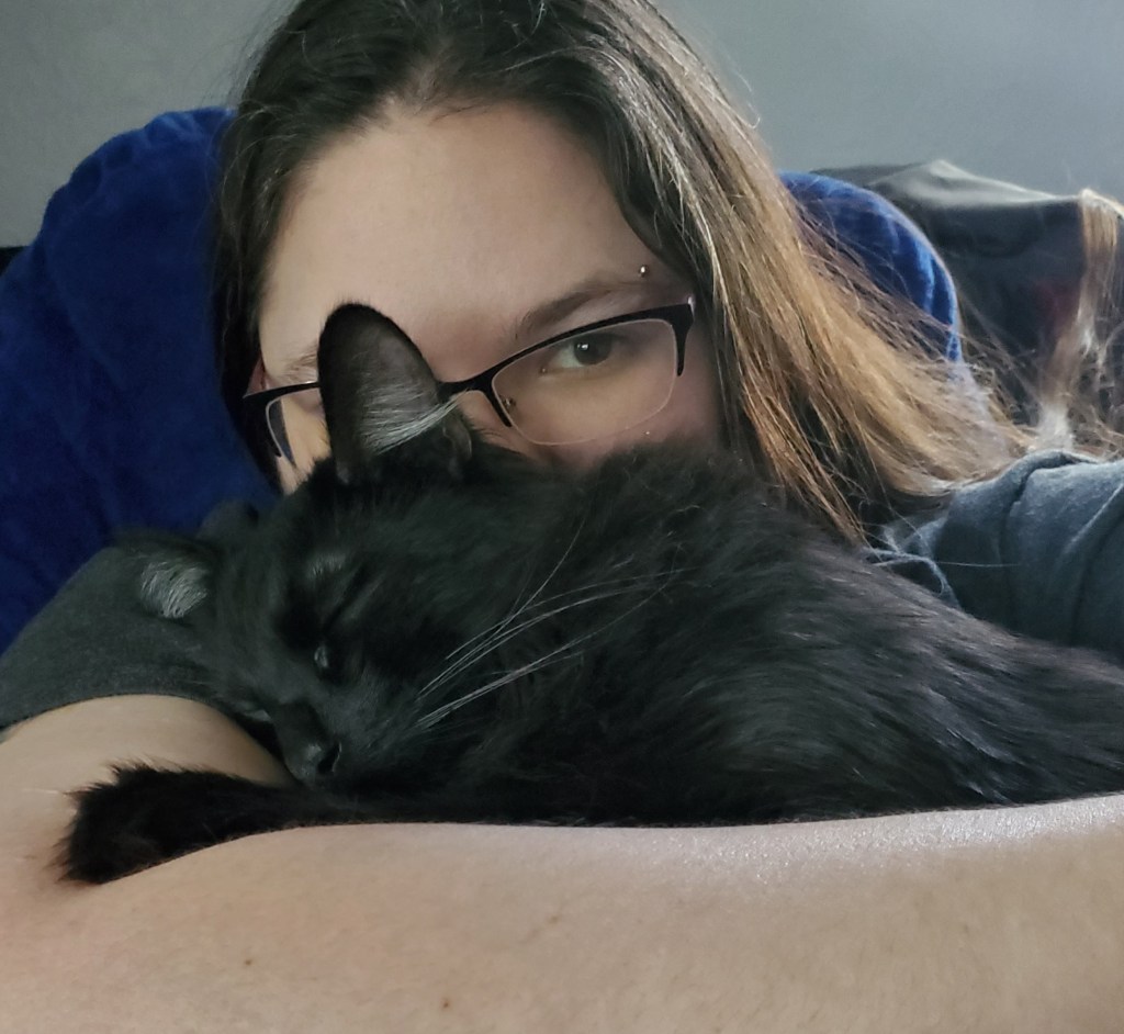 For me… my animals were my rock, they were my emotional support when things got bad. When I couldn’t turn to them anymore… I was entirely lost. There was always just one creature that still acted as an emotional sink for me and I will die on the hill that self care is pressing your face into an extra fluffy cat. Chaos, my best kitty, has been my emotional rock through it all… and I have been absolutely terrified of losing him… especially since the reason I have him was because I lost my first soul kitty in 2019 to an unpredictable medical event. I didn’t think I would find another cat like him and wasn’t looking for a while, but then I saw an adoption post for Chaos (who was then called Lucifer) and something just felt right. I went to meet him and he was just so perfect. If I was a religious or spiritual person I would have said that my past kitty, Merlin, led me to this new kitty to help heal the hole he left in my heart with his passing, the last little bit of magic he gave me.Â
